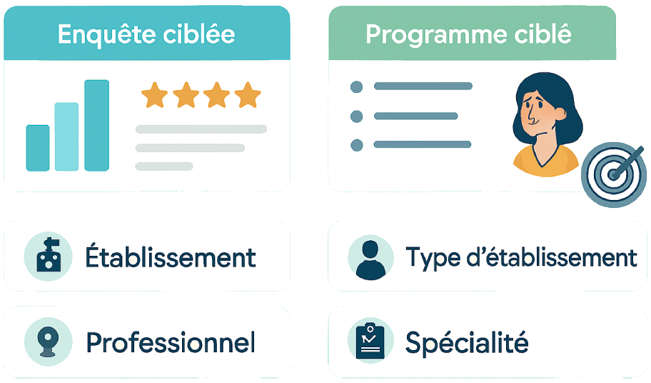Idéal pourRéseaux de crèches, groupes multi-sites, directions qualité, organismes/éditeurs, institutions qui souhaitent piloter des retours professionnels de façon segmentée.